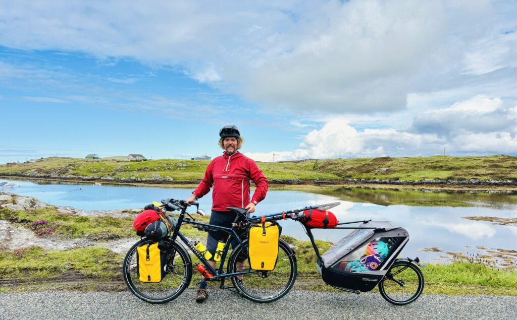 Eşim ve kızımla (küçük römorkunda güvenle taşınıyor) tur bisikletimle dünyayı keşfediyorum.